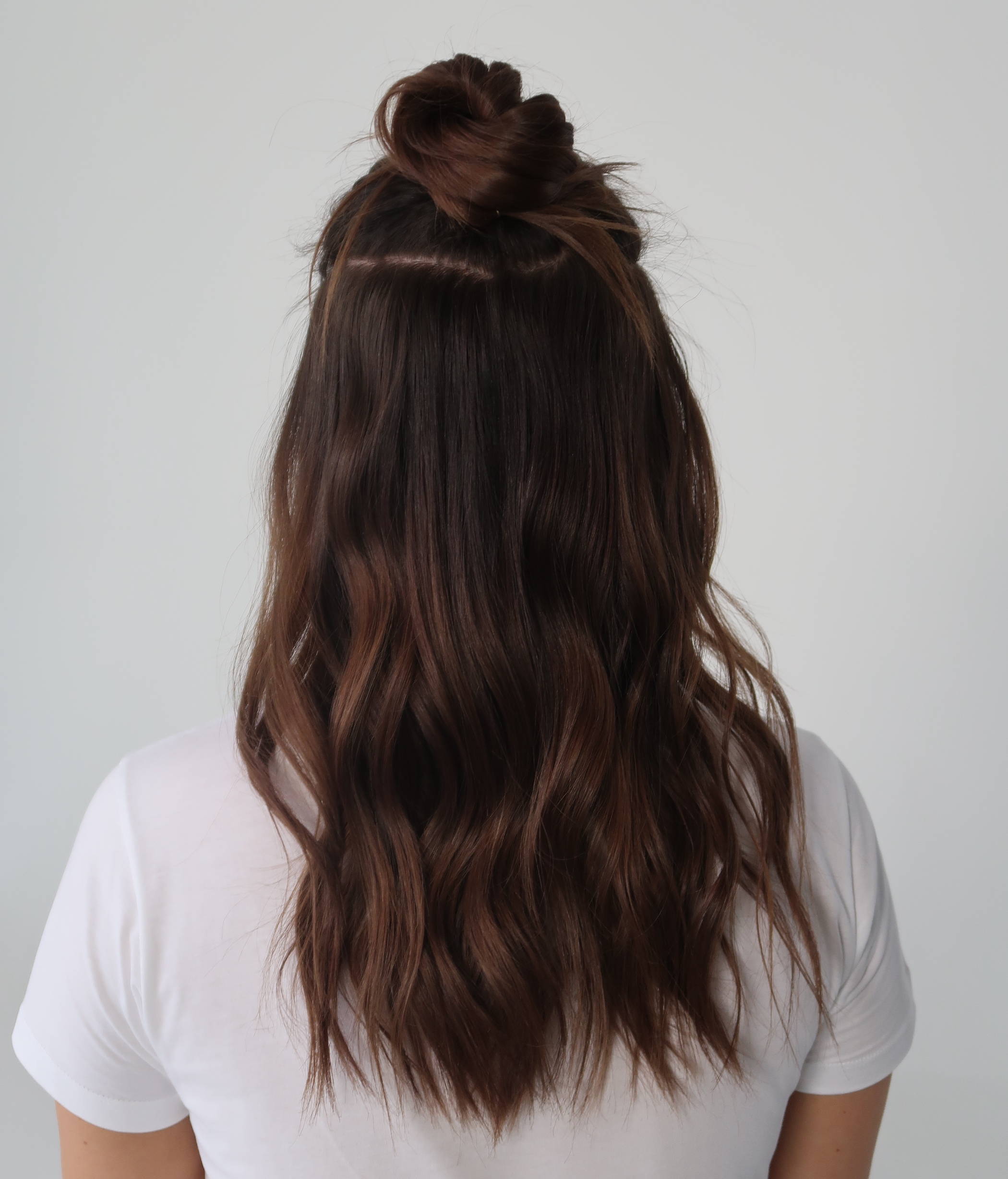 This summer hairstyle lets you keep your hair up and out of your face, while still letting flattering tendrils hang loose at the bottom. To get the half-up half-down style, start by dividing your hair horizontally, pulling the top portion up. Secure it with an elastic hair band, and use a light hair oil to smooth any flyaways.