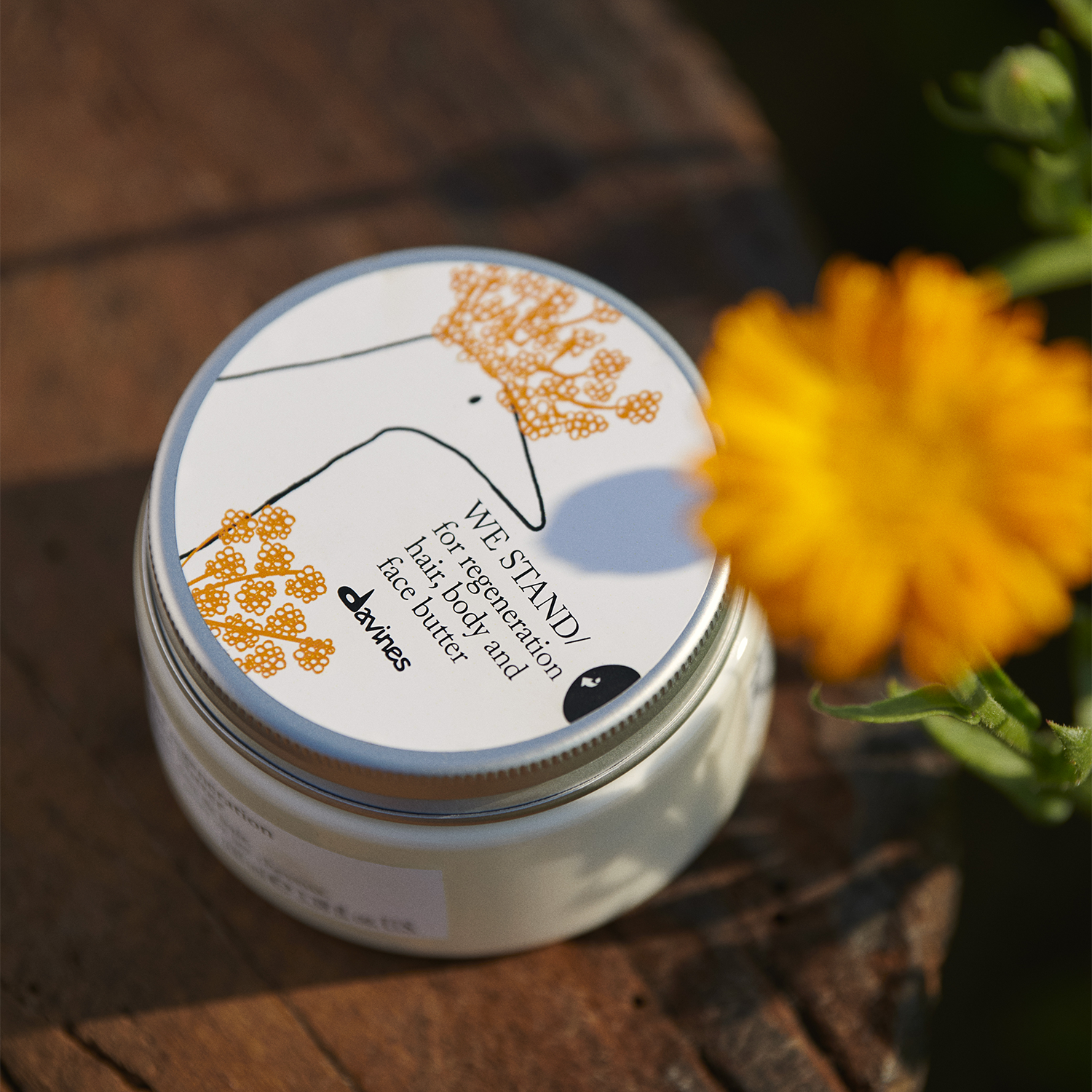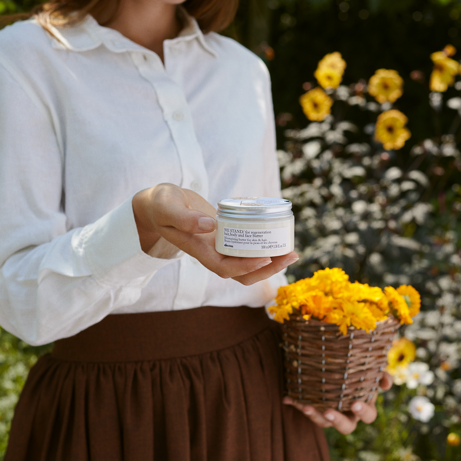 Your everyday beauty choices make a difference. Our limited-edition moisturizing butter for hair, face, and body is 93.25% natural and 85.5% biodegradable. It contains Calendula, our first Regenerative Organic Certified® activist® ingredient, grown at the European Regenerative Organic Center in Parma, Italy, to help combat climate change while supporting your daily beauty needs.