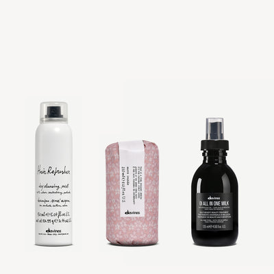 OI ALL IN ONE MILK 135ML: AQUA / WATER / EAU, CETEARYL ALCOHOL, PANTHENOL, BEHENTRIMONIUM CHLORIDE, PARFUM / FRAGRANCE, BENZYL ALCOHOL, CETYL ALCOHOL, TOCOPHEROL, AMODIMETHICONE, CETRIMONIUM CHLORIDE, AMODIMETHICONE/SILSESQUIOXANE COPOLYMER, SODIUM BENZOATE, TRIDECETH-5, CITRIC ACID, GLYCERIN, TRIDECETH-12, CYCLOPENTASILOXANE, PHENOXYETHANOL, HELIANTHUS ANNUUS SEED OIL / HELIANTHUS ANNUUS (SUNFLOWER) SEED OIL, BIXA ORELLANA SEED EXTRACT, HEXAMETHYLINDANOPYRAN, EUCALYPTUS GLOBULUS OIL, ACETYL CEDRENE, TERPINEOL, CITRONELLOL, LAVANDULA OIL/EXTRACT, GERANIOL, METHYL SALICYLATE, ALPHA-ISOMETHYL IONONE, CAMPHOR, PELARGONIUM GRAVEOLENS FLOWER OIL, LINALOOL, LINALYL ACETATE, LIMONENE, CITRUS LIMON PEEL OIL / CITRUS LIMON (LEMON) PEEL OIL, PINENE. MI CURL BUILDING SERUM 250ML: AQUA / WATER / EAU, GLYCERIN, VP/DMAPA ACRYLATES COPOLYMER, CETEARYL ALCOHOL, PANTHENOL, BEHENTRIMONIUM CHLORIDE, POLYQUATERNIUM-37, PROPYLENE GLYCOL DICAPRYLATE/DICAPRATE, AMODIMETHICONE, BENZYL ALCOHOL, PARFUM / FRAGRANCE, VINYL CAPROLACTAM/VP/DIMETHYLAMINOETHYL METHACRYLATE COPOLYMER, SODIUM BENZOATE, PPG-1 TRIDECETH-6, TRIDECETH-12, CETRIMONIUM CHLORIDE, CITRIC ACID, CYCLOPENTASILOXANE, LINALOOL, SORBITAN OLEATE, LIMONENE, PHENOXYETHANOL, BENZALKONIUM CHLORIDE.HAIR REFRESHER 150ML: BUTANE, PROPANE, ISOBUTANE, ORYZA SATIVA STARCH / ORYZA SATIVA (RICE) STARCH, CYCLOPENTASILOXANE, ALCOHOL DENAT., PHENYL TRIMETHICONE, CITRONELLYL METHYLCROTONATE, PARFUM / FRAGRANCE, SILICA SILYLATE, LIMONENE.